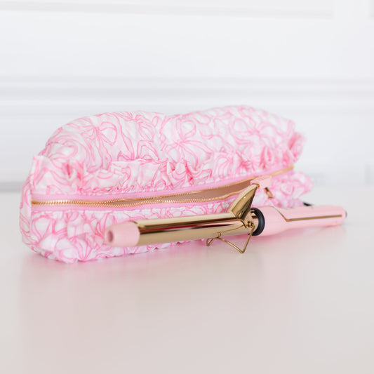 Polka Stripe Ruffled Nylon Large Clear Pouch
