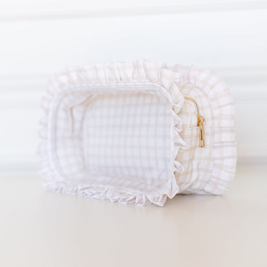 Nude Plaid Ruffled Nylon Large Clear Pouch