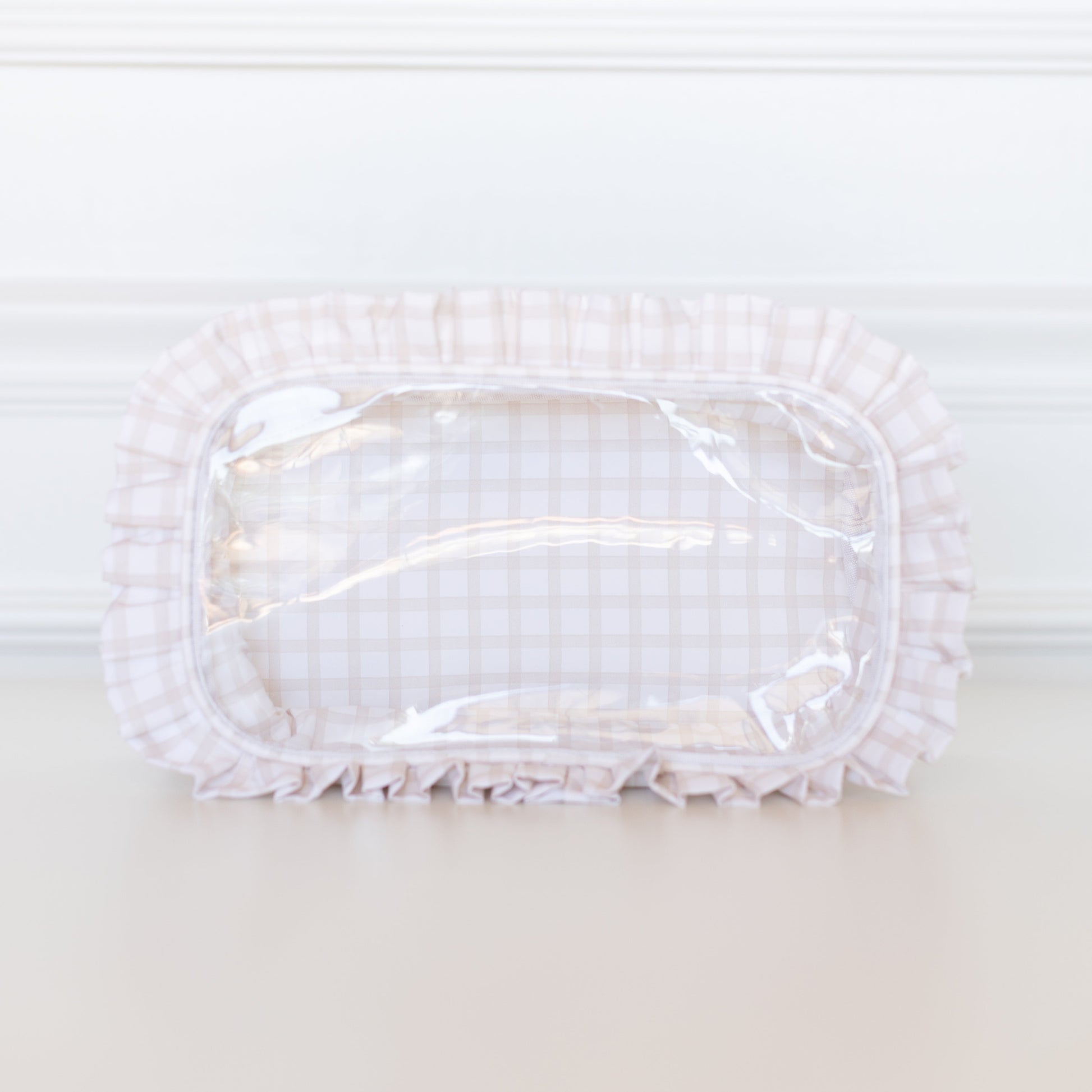 Nude Plaid Ruffled Nylon Large Clear Pouch