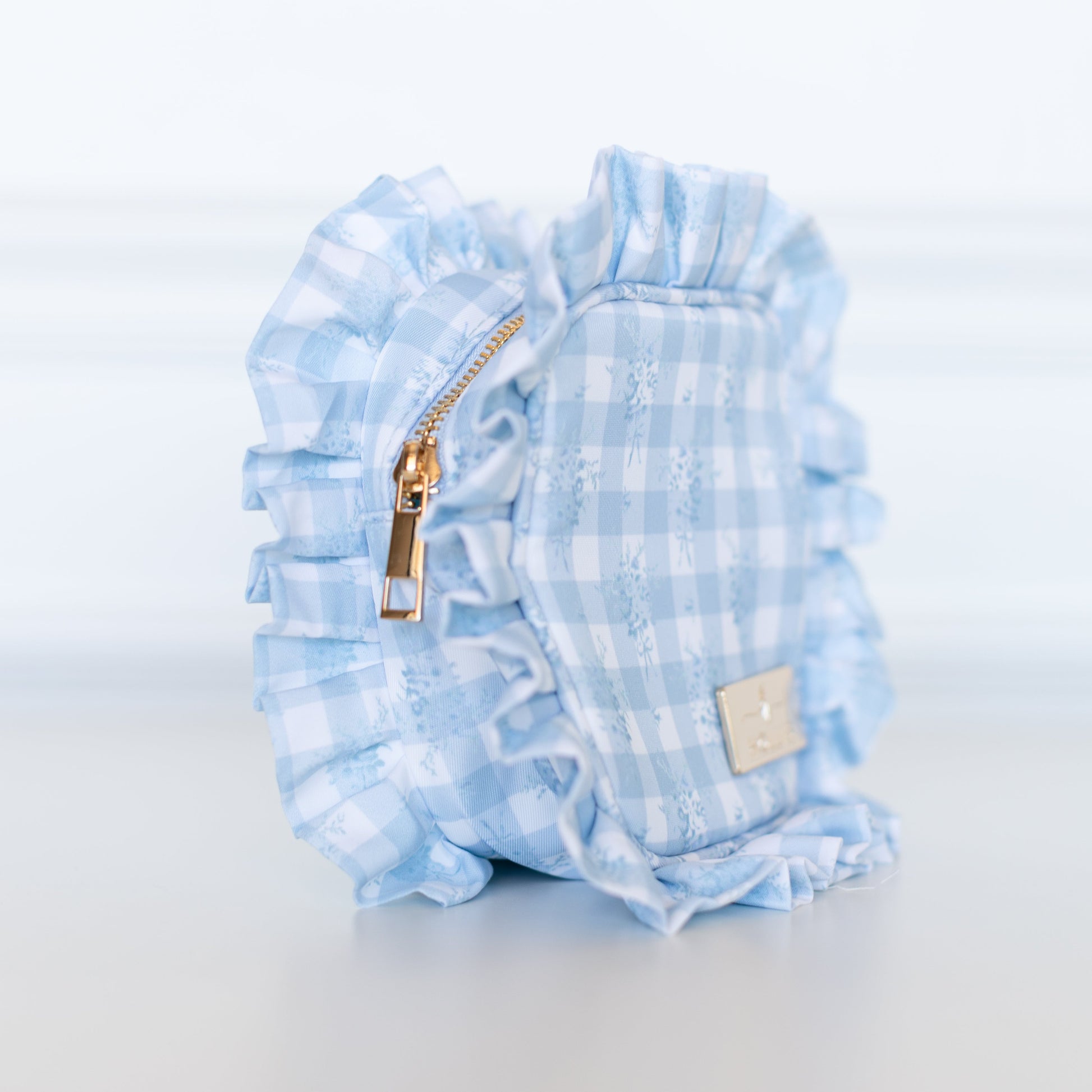 Keep your cords cute and your essentials organized with our Ruffled Nylon Tech Organizer — now available in Pink Floral and Blue Floral! Thoughtfully designed to simplify travel and everyday life, this compact pouch opens ¾ of the way for easy access to all your tech must-haves.