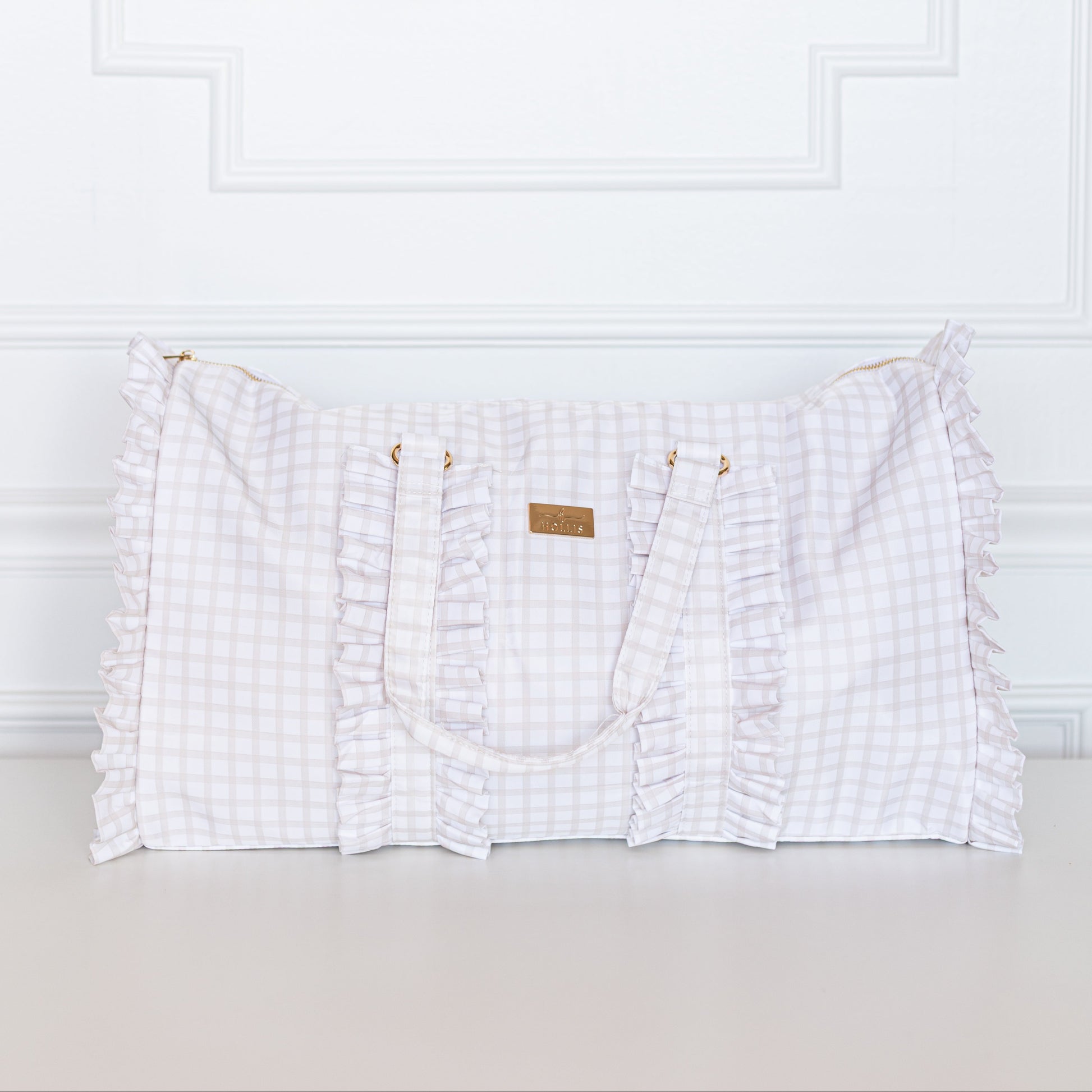 Introducing our NEW Nude Plaid Ruffled Nylon Weekender!