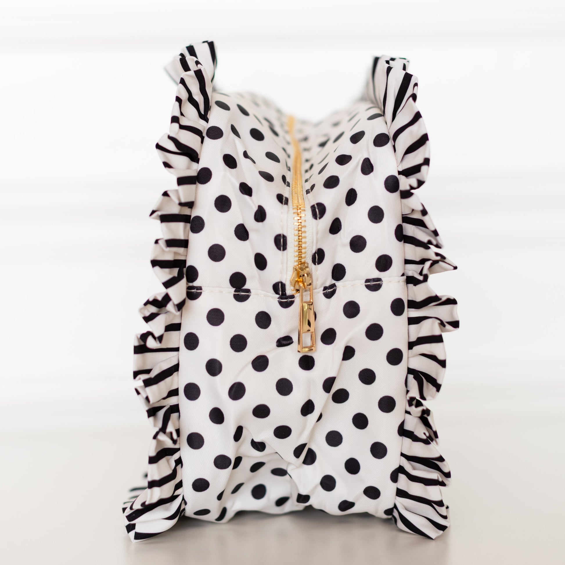 Introducing our NEW Polka Stripe Ruffled Nylon XL Pouch!